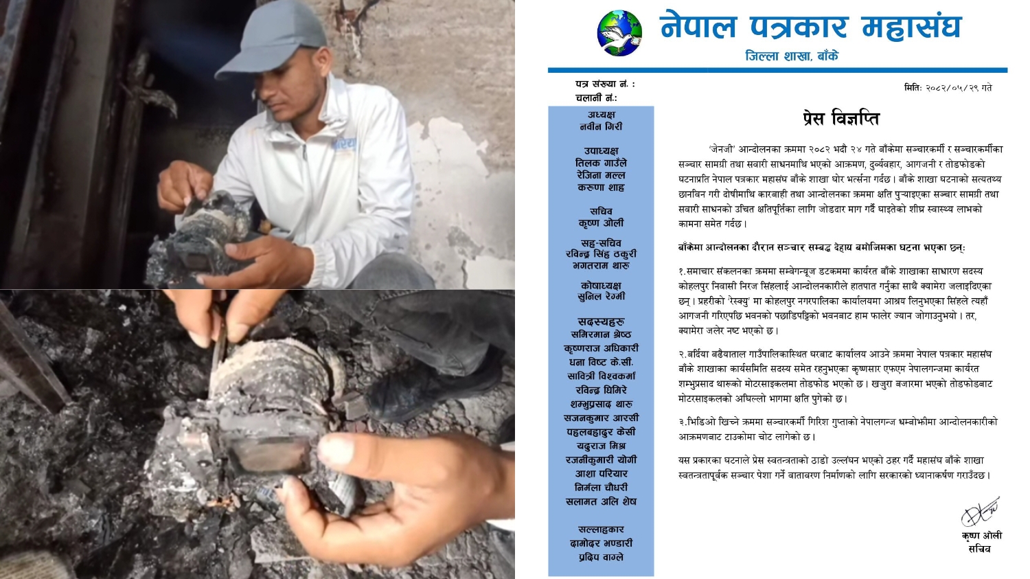 नगरपालिका भवनको वरिपरि भइरहेको तोडफोड, आगजनी र प्रदर्शनको विवरण संकलन गरिरहेकै बेला आक्रोशित आन्दोलनकारीको एक समूहले उनीमाथि हातपात गर्दै क्यामेरा खोसेर जलाइदिएको हो ।
