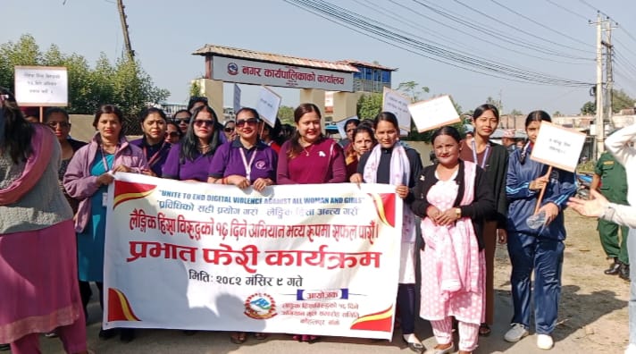 शिवानी विक कोहलपुर मंसिर ९– डिसेम्बर २५ अर्थात आजबाट सुरु भएको छ देशभर ‘लैङ्गिक हिंसा सचेतना सप्ताह’, । कोहलपुर नगरपालिकाको भवनअगाडि झुण्ड्याइएको ठूलो ब्यानरले घोषित गरिरहेको थियो– “लैङ्गिक हिंसा विरुद्धको १६ दिने अभियान ः आजबाट सुरू” ।
