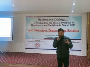 कोहलपुर । एफसीडी नेपालद्वारा आयोजित ‘गुड गभर्नेन्स, डेमोक्रेसी एण्ड सोसलिज्म’ विषयक सिकाइ–आदानप्रदान कार्यक्रम कोहलपुरमा सम्पन्न भएको छ। समाज, राजनीति र सञ्चार क्षेत्रमा सक्रिय ४० जना सहभागी उपस्थित रहेका कार्यक्रममा सुशासन, लोकतन्त्र, समाजवाद र भूराजनीतिक परिवेशबारे गहन चर्चा गरिएको थियो।
