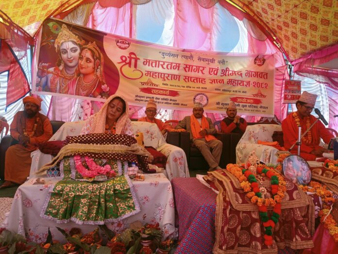 बाँके, कोहलपुर नगरपालिका–११ गोलपार्कस्थित श्रीमत्तारतम सागर एवं श्रीमद्व भागवत महापुराण सप्ताह ज्ञान महायज्ञ भव्य रूपमा जारी छ। कथा बाचक साहित्याचार्य जनार्दन महाराज र उप–बाचक विदुषी उषा घिमिरेको सुमधुर वाणीले दैनिक रूपमा भक्तजनहरूलाई आध्यात्मिक वातावरणमा डुबाइरहेको छ। मंसिर १४ गतेदेखि २० गतेसम्म सञ्चालन हुने महायज्ञमा नियमित रूपमा अमृतमय भागवत कथा श्रवण गरिँदै आएको आयोजकले जनाएको छ।