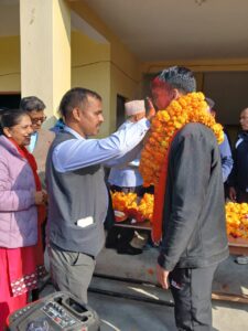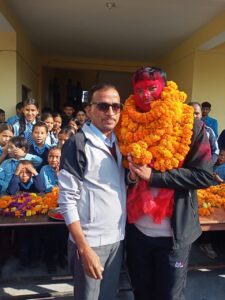 विद्यालयले सन्देश बुढालाई सम्मान पत्र, खादा, माला र अबिर लगाएर सम्मान व्यक्त गरेको थियो।