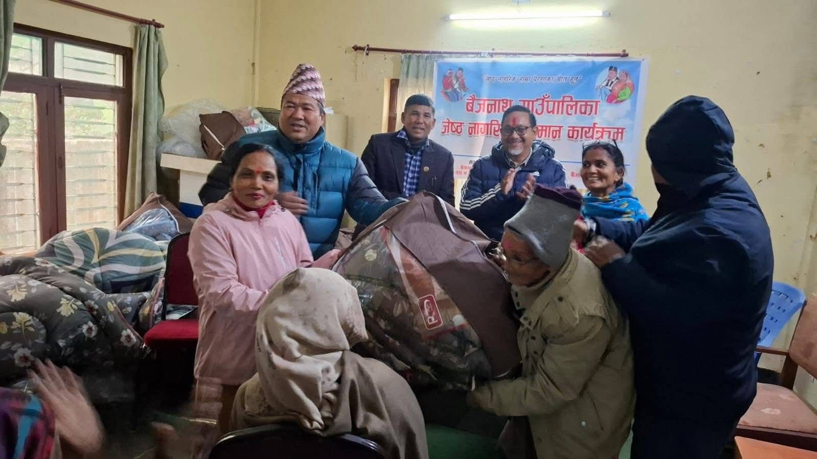बाँके (बैजनाथ) कठ्यांग्रिदो जाडो मौसमलाई लक्षित गर्दै बैजनाथ गाउँपालिकाले जेष्ठ नागरिकलाई न्यानो कपडा वितरण कार्यक्रम सुरु गरेको छ । गाउँपालिकाले जेष्ठ नागरिक सम्मान कार्यक्रम अन्तर्गत गाउँपालिकाका सबै ८ वटै वडामा एकैसाथ न्यानो कपडा (फाइबर सिरक) वितरण सुरु गरेको हो ।