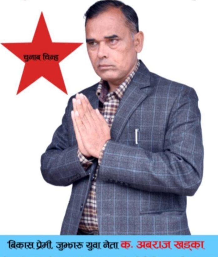बाँके, कोहलपुर – पार्टीलाई जित दिलाउँदै समग्र विकासको अभियान अघि बढाउने लक्ष्यसहित अबराज खड्काले बाँके निर्वाचन क्षेत्र नम्बर १ बाट आगामी निर्वाचनमा बलियो उम्मेदवारका रूपमा आफ्नो दाबी प्रस्तुत गरेका छन्।